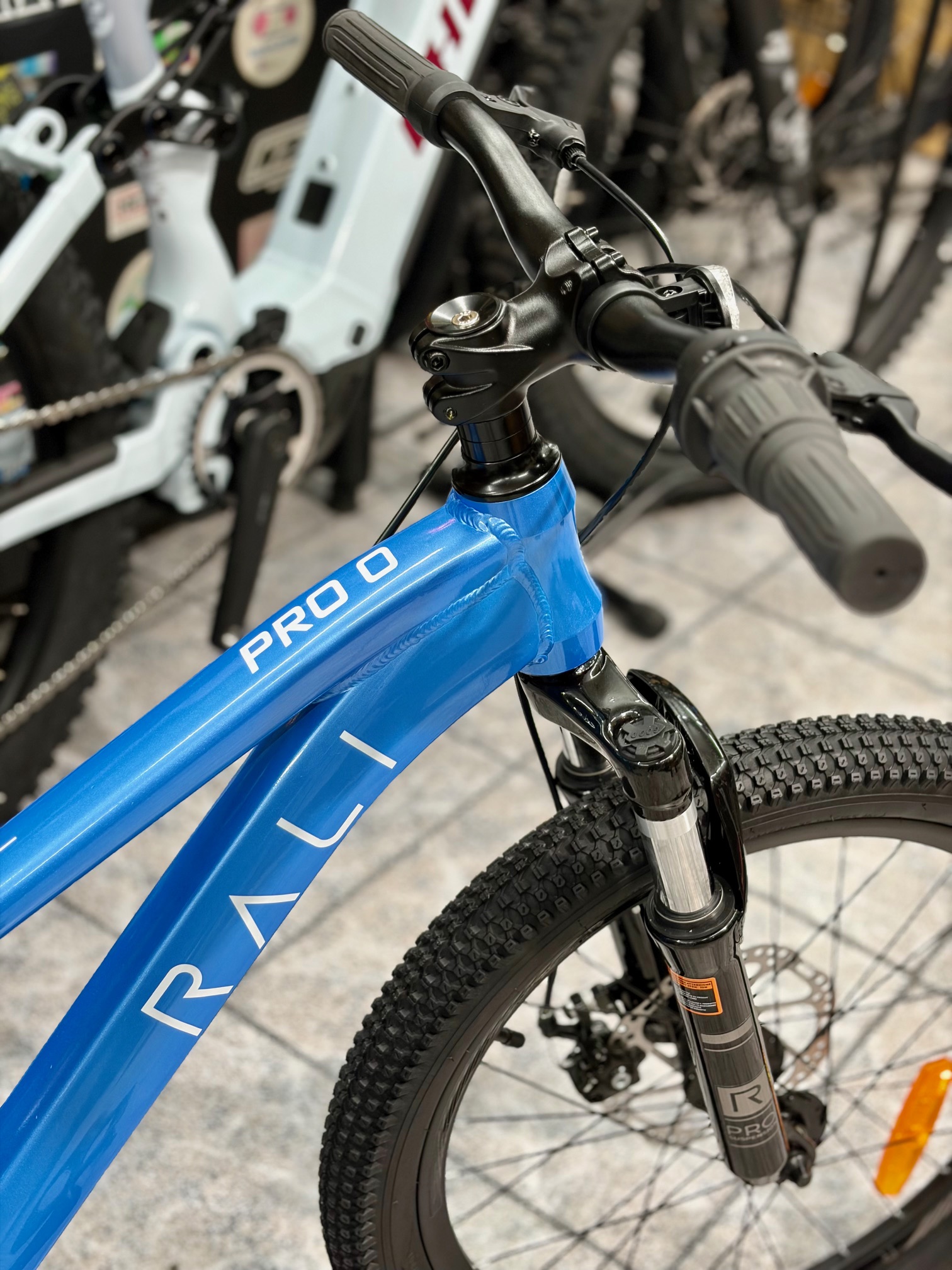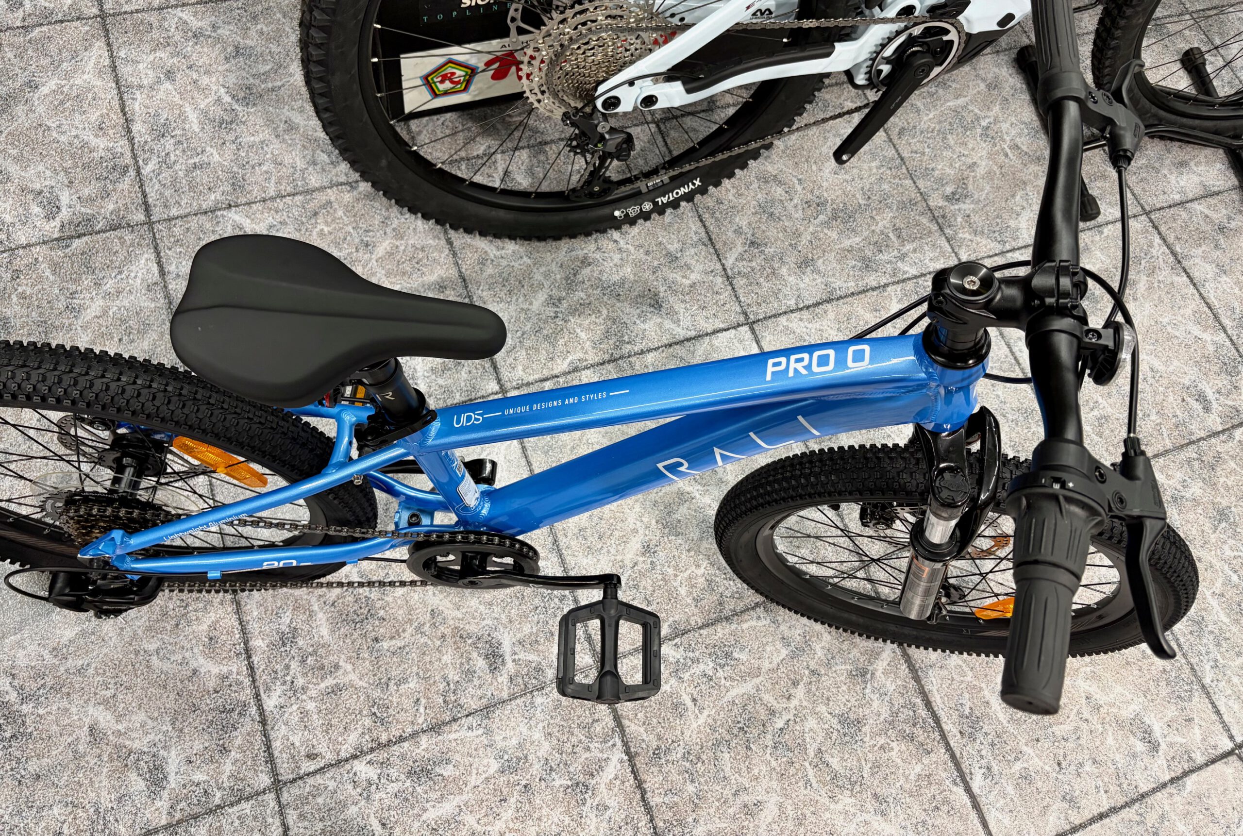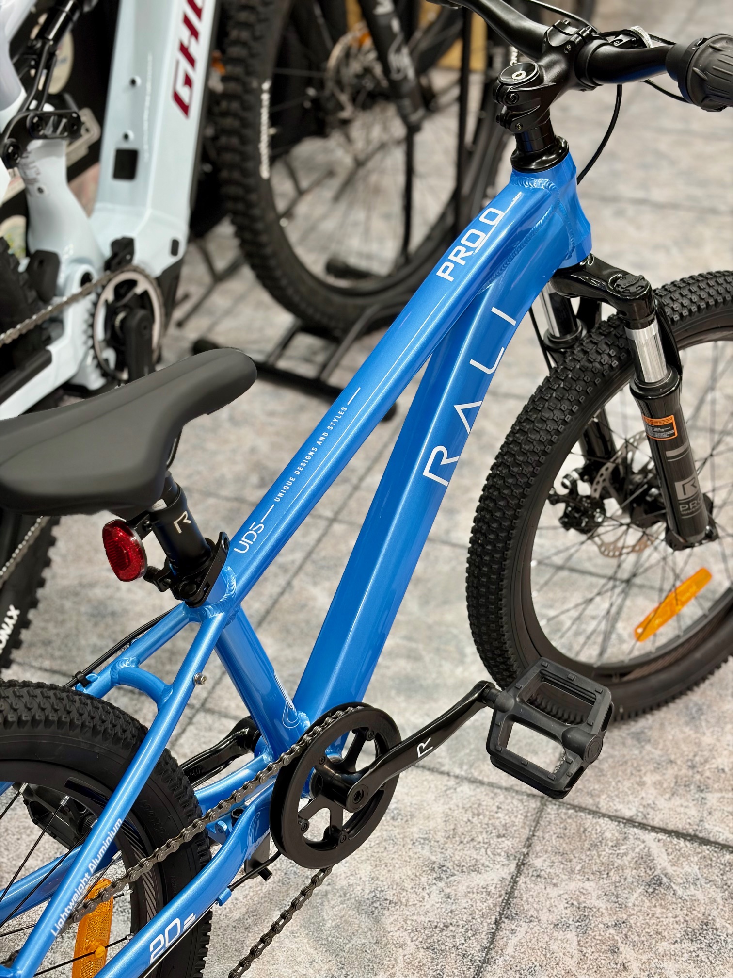 Nueva RALI PRO de 20″ con frenos de disco, suspensión y 7 velocidades, con un ligero cuadro de aluminio con slooping, que permite una mejor comodidad a los niños al momento de subir y bajar de la bicicleta. Cuenta con cableado interno, cierres rápidos y todos los componentes de aluminio.